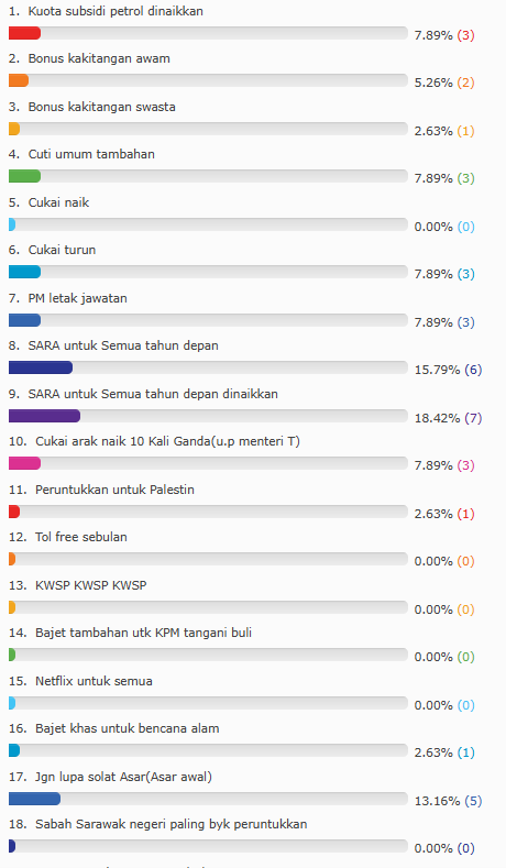 LowYat’s smaller poll (20 votes) emphasised welfare, with 18.42% favouring increasing SARA allocations next year and 15.79% favouring maintaining SARA for the following year.